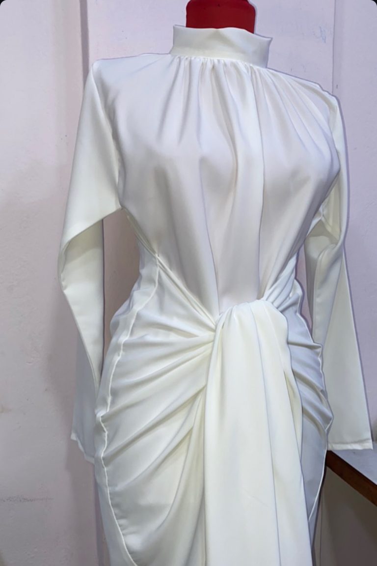 Material krem turku, model teper i vecante me detajin e lidhjes para, qe mund te lidhet sipas deshires