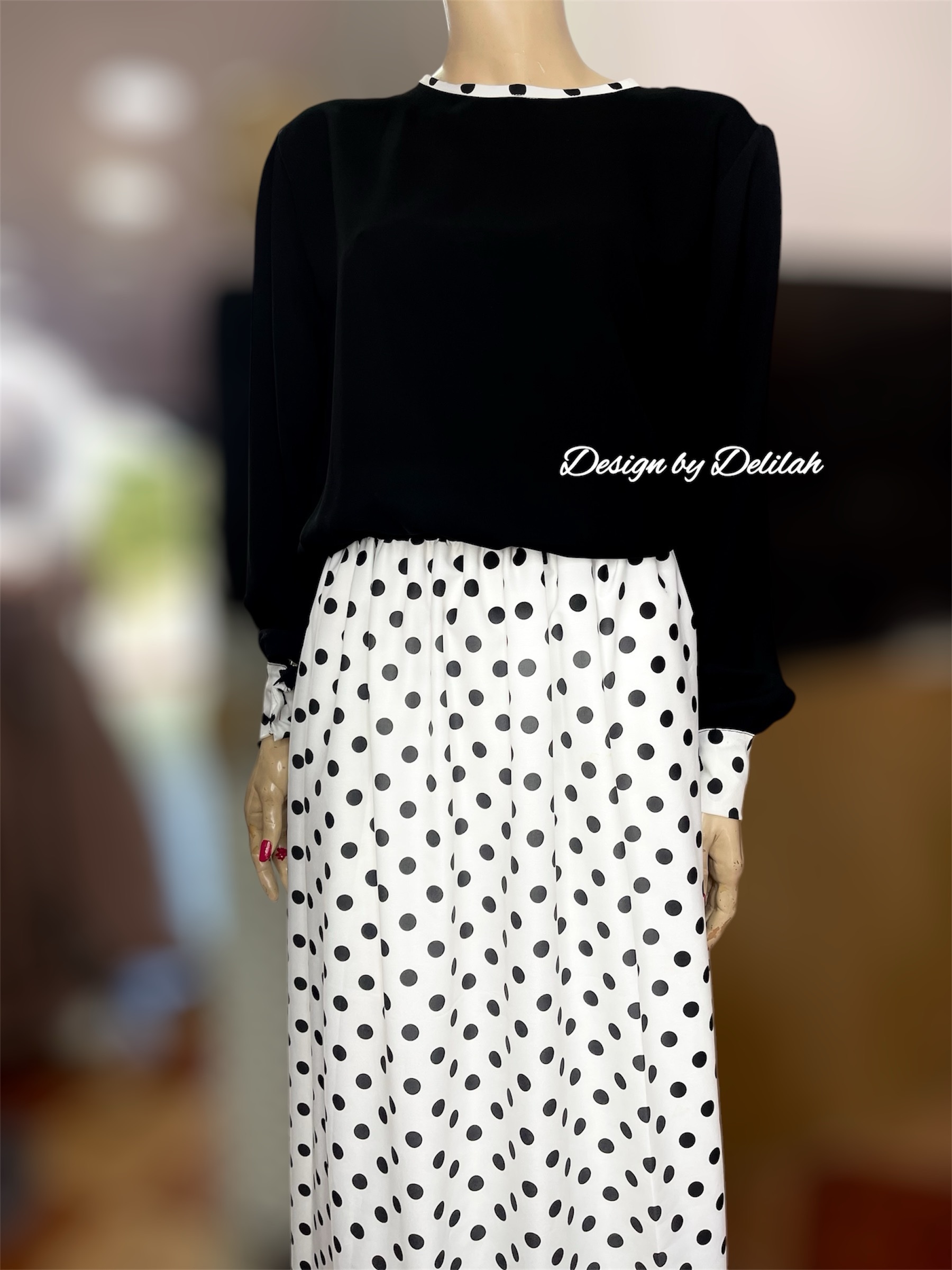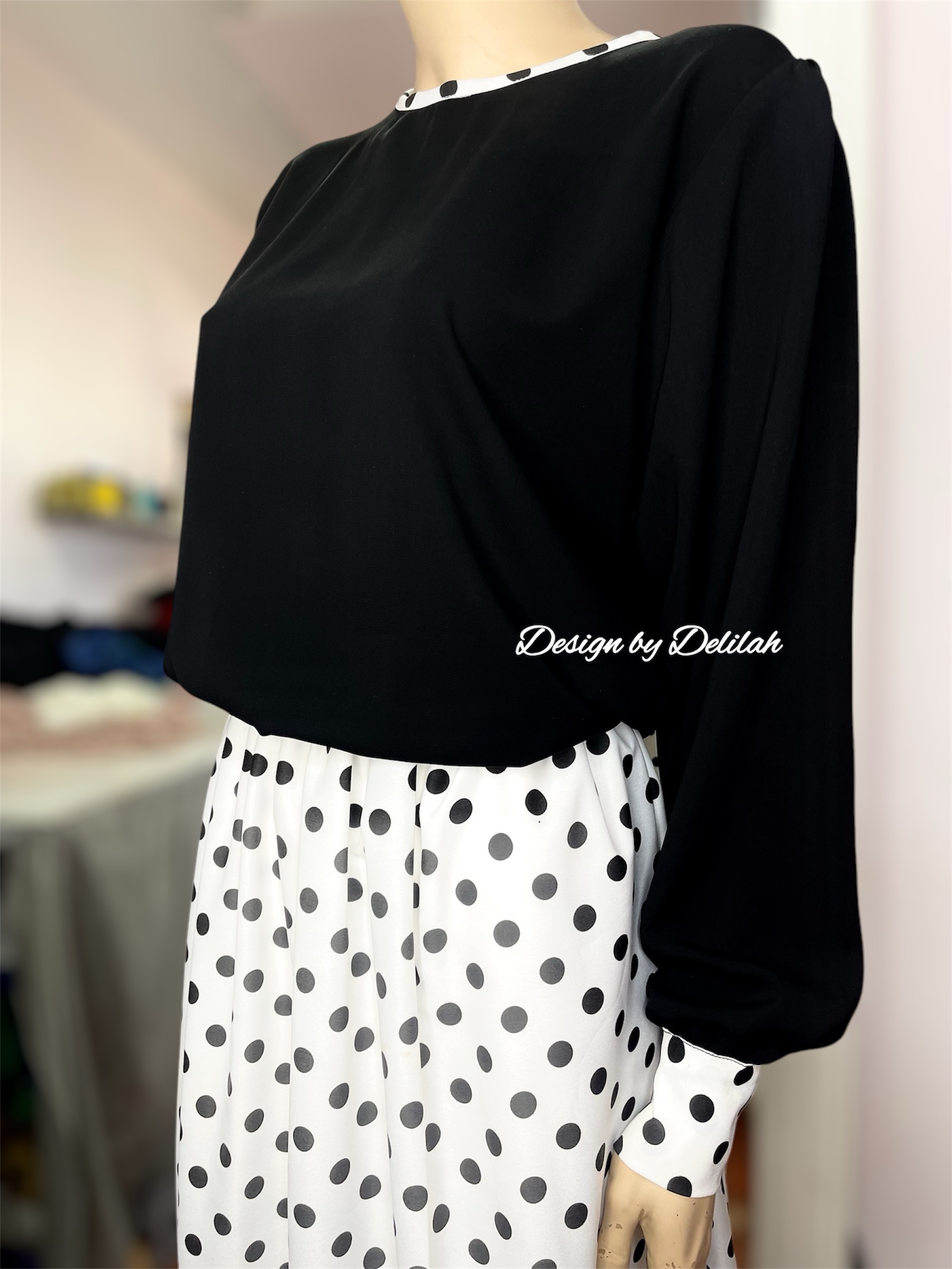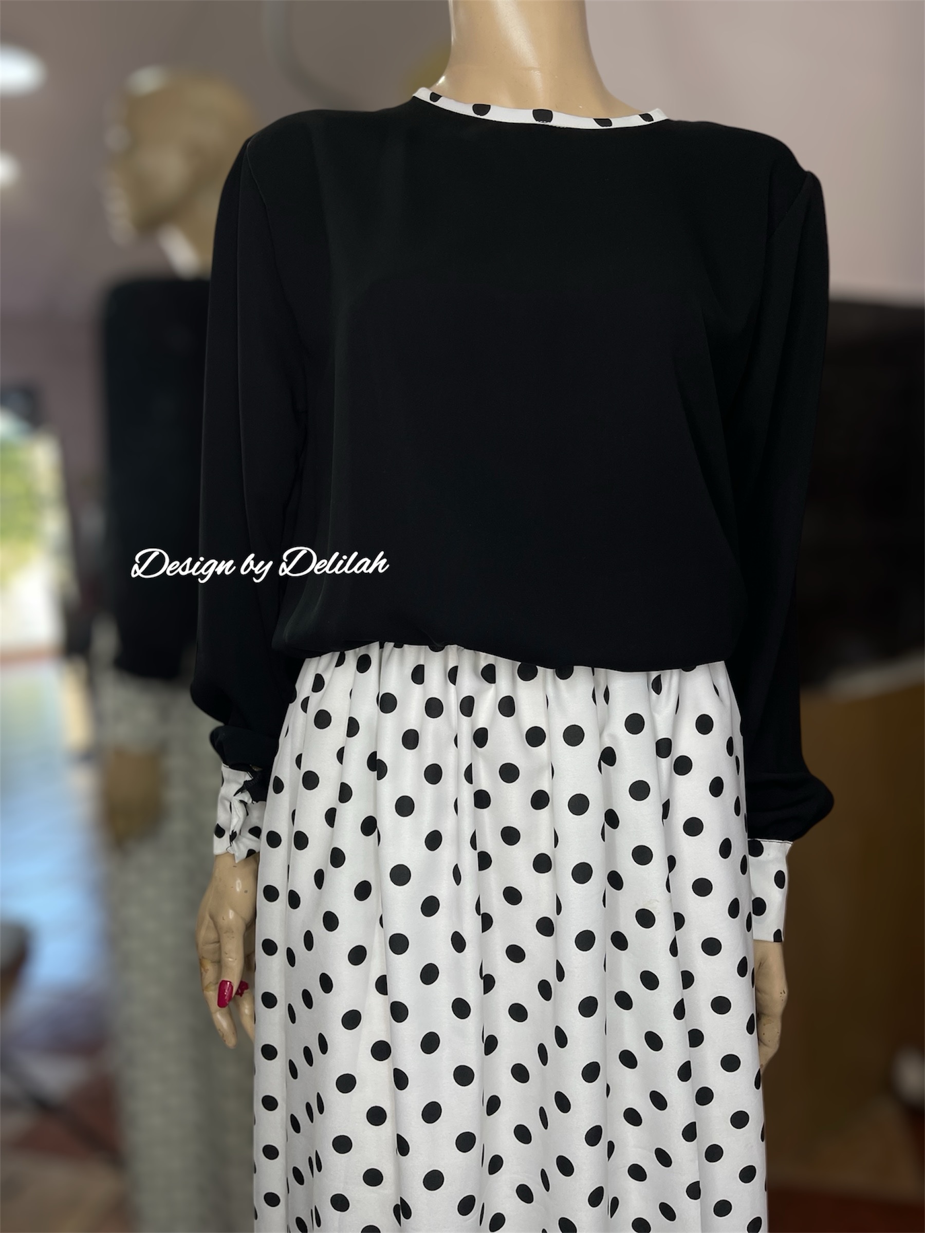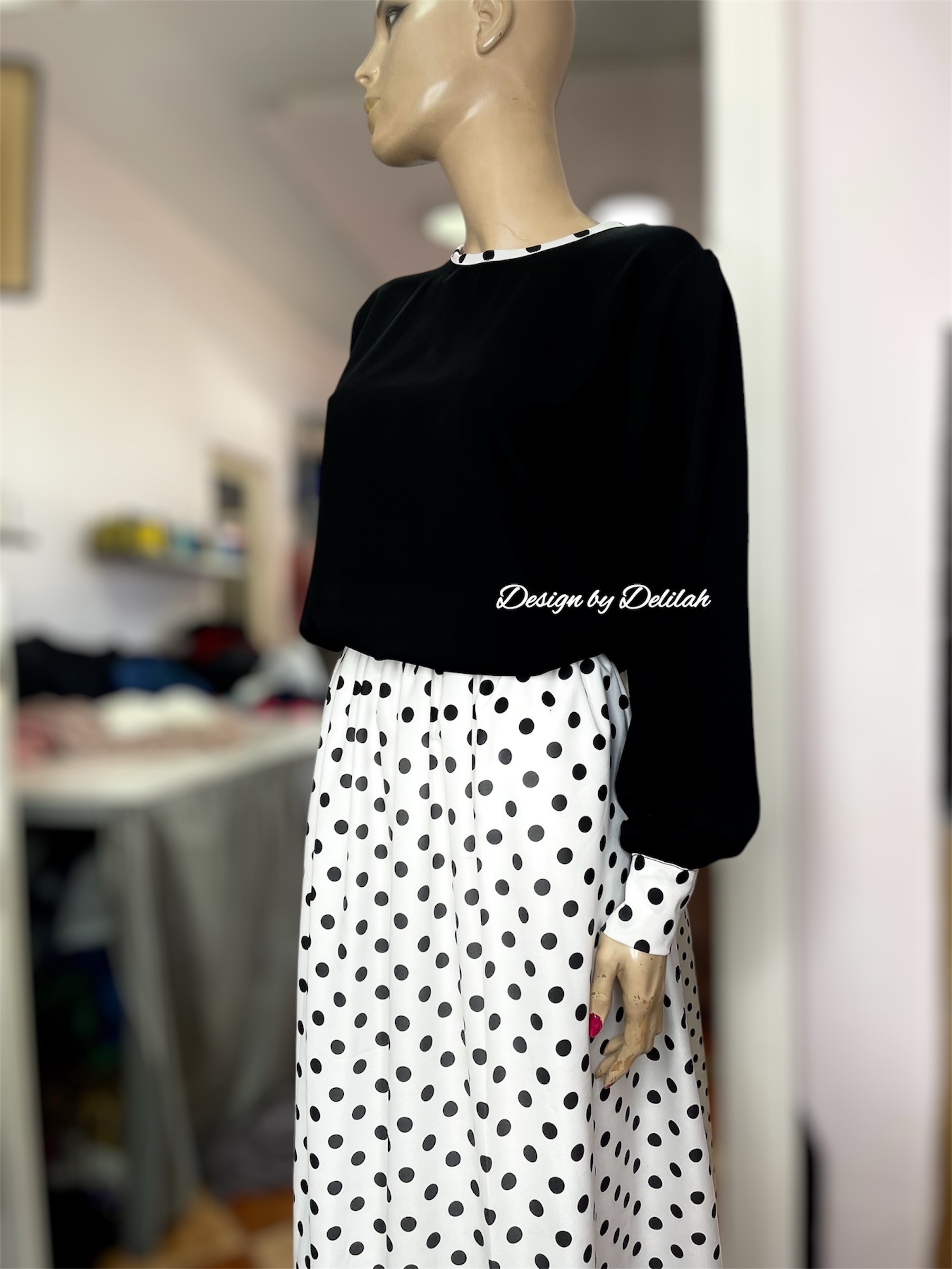Pjesa e poshtme cope e bardhe me pika te zeza, me astar poshte