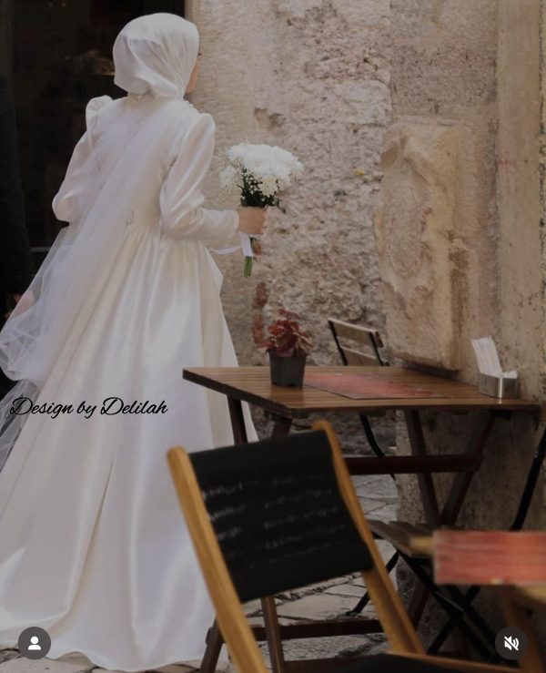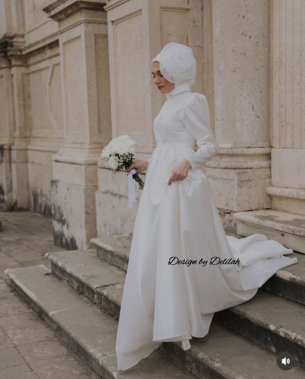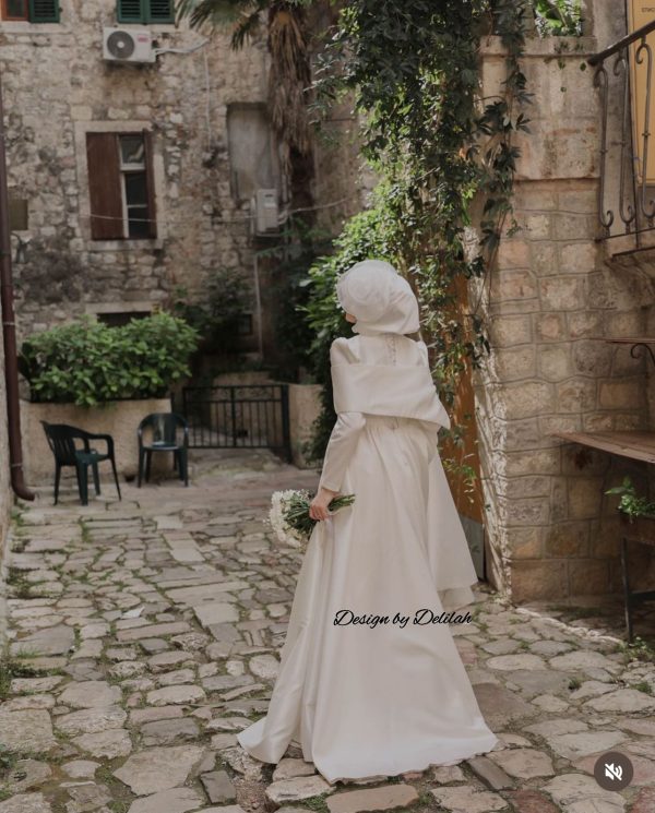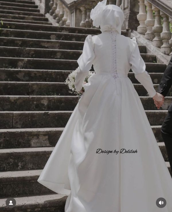 Fustan per nuse, ka 2 pjese te ndryshme qe hiqen dhe vendosen per te ndryshuar modelin e fustanit