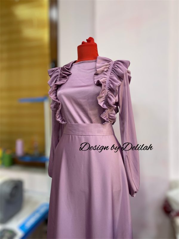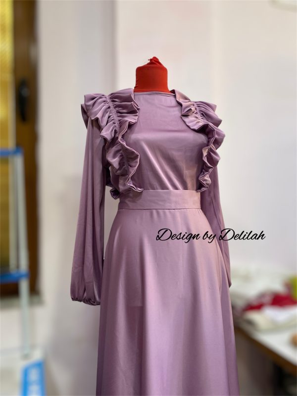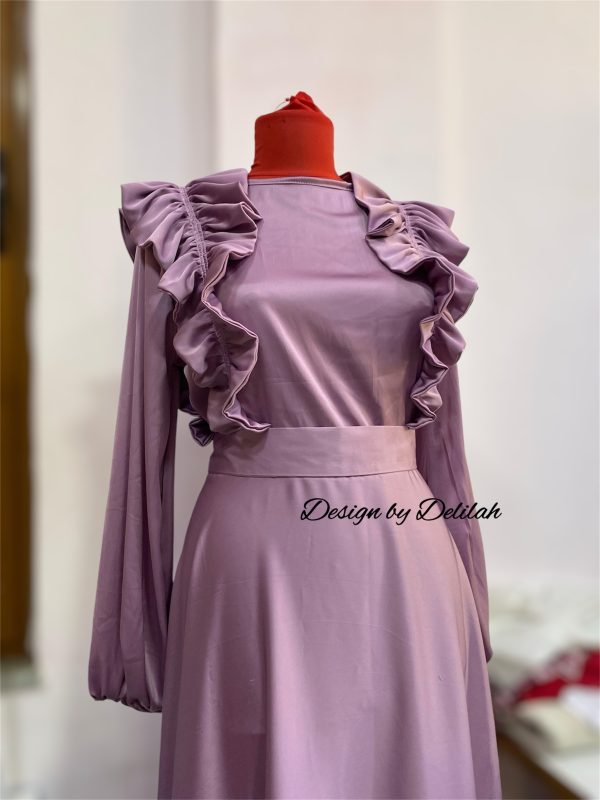 Material cilesor, me detaje fluturash tek busti para dhe pas, pjesa e poshtme veref