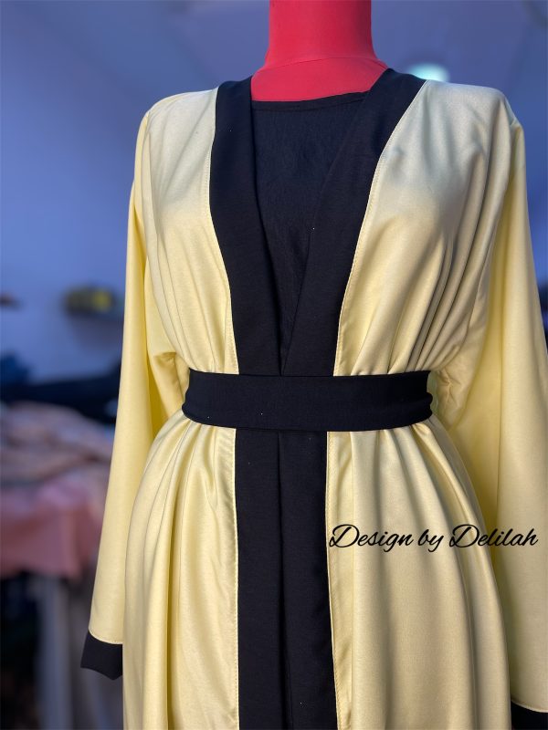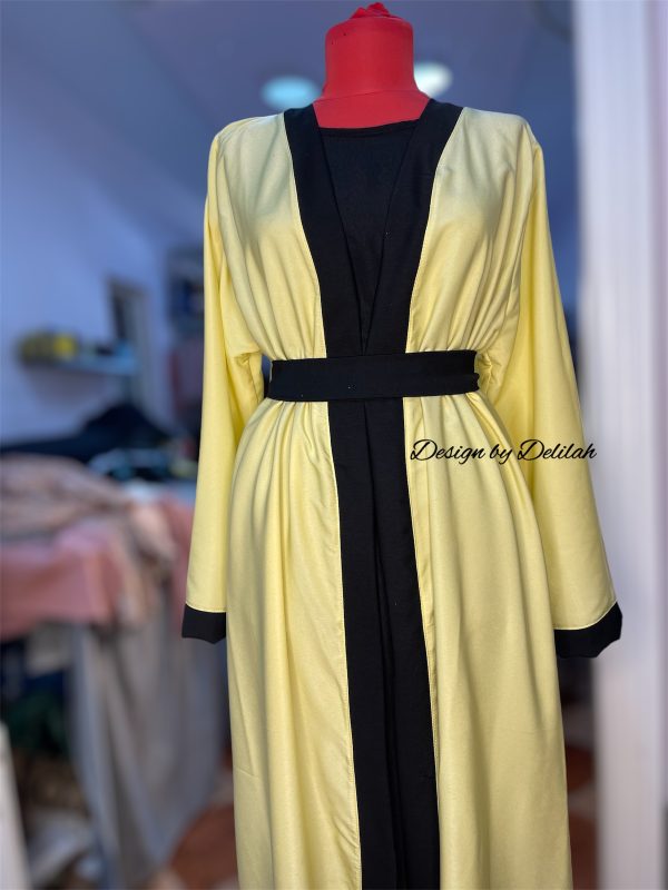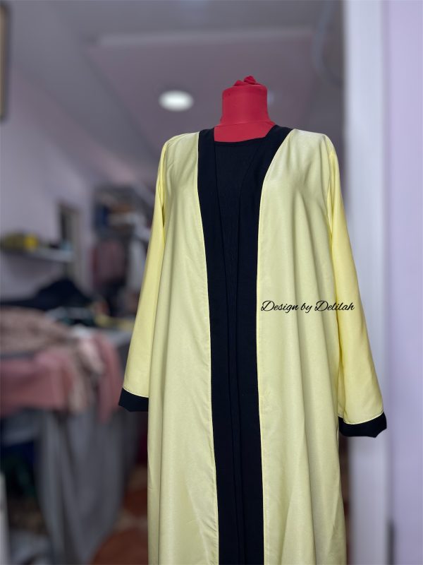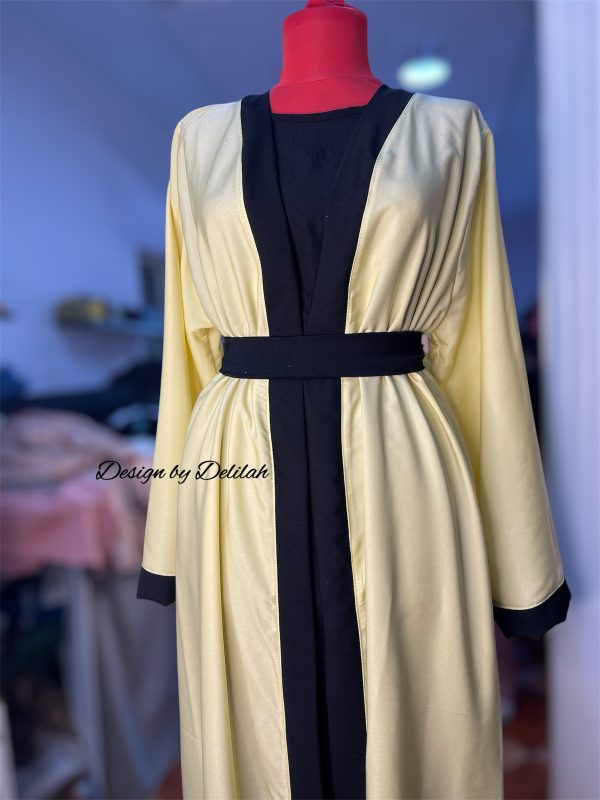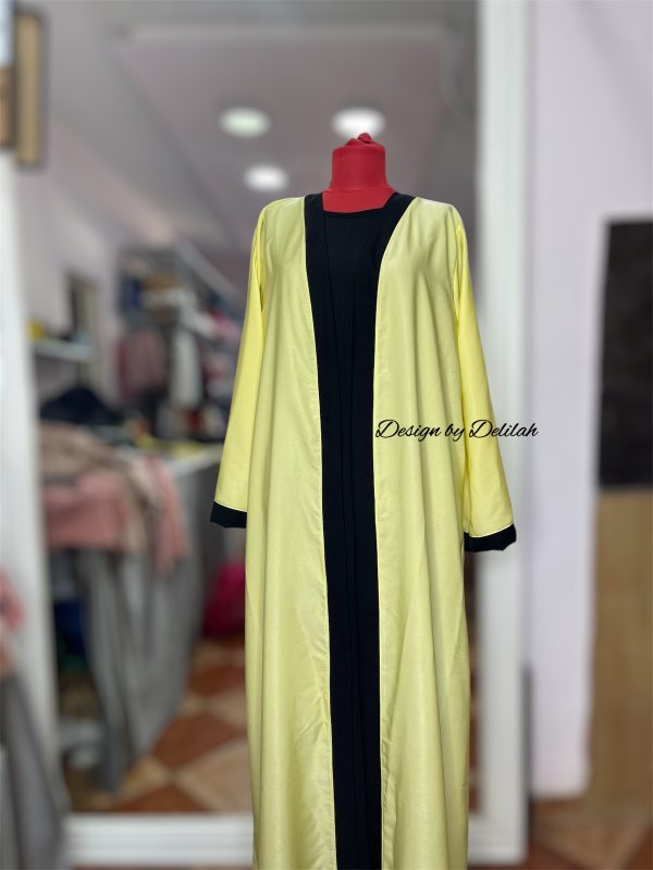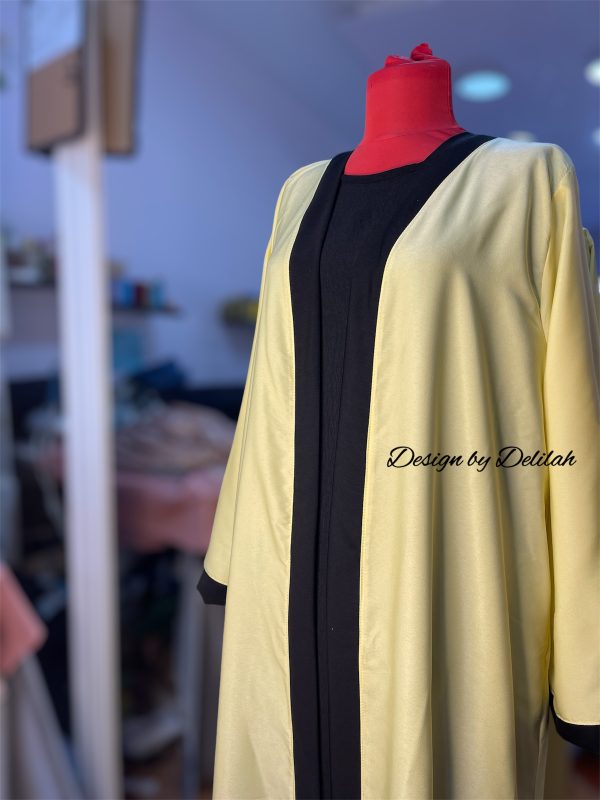 Material i derdhur dhe jo i tejdukshem, abaya me detaje me cope te zeze tek bordurat dhe tek dorezat,